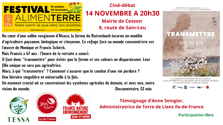 - Festival alimentaire le 14 novembre mairie de Cesson à 20:30H
